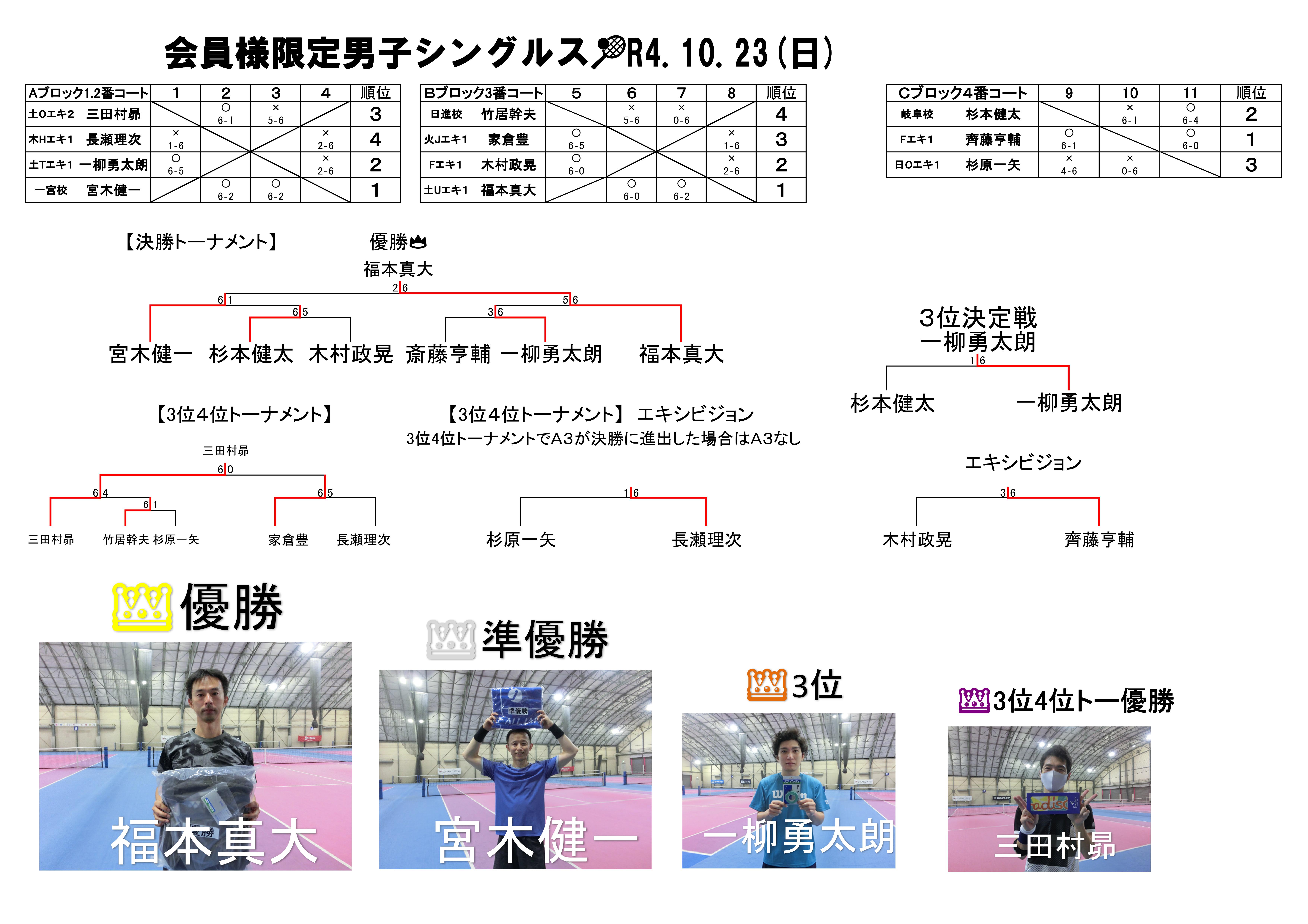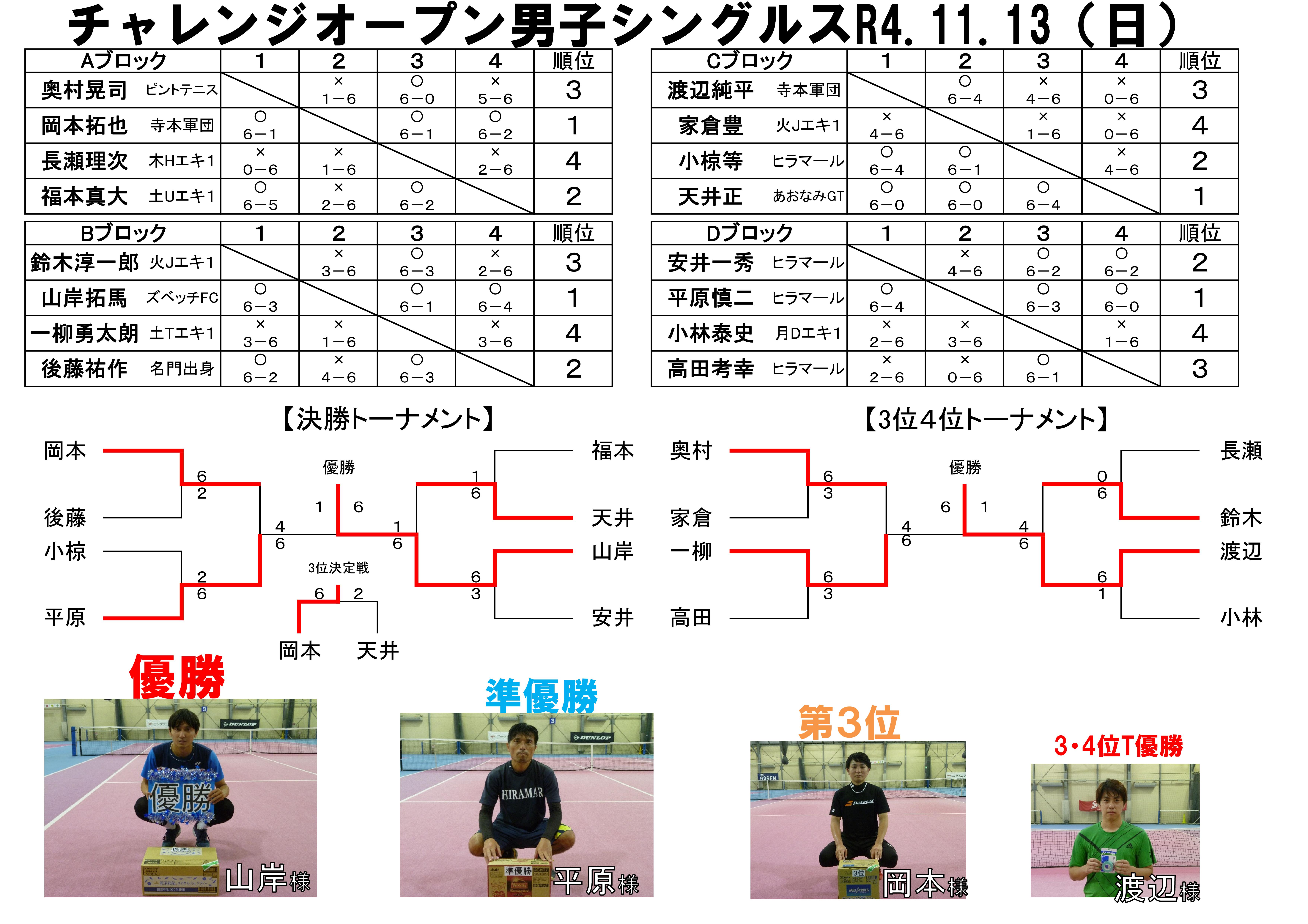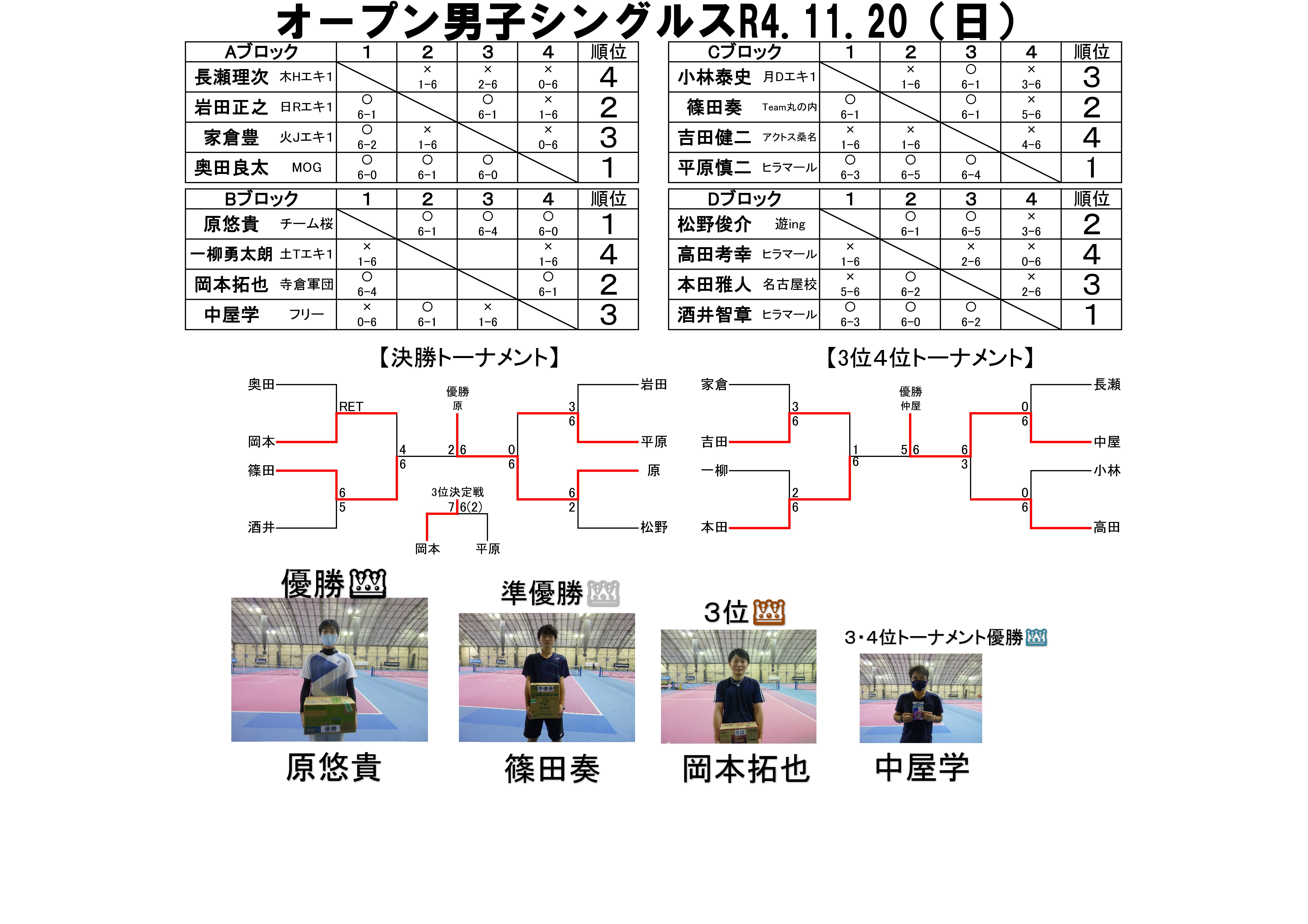 オープン男子シングルス結果(1/22)