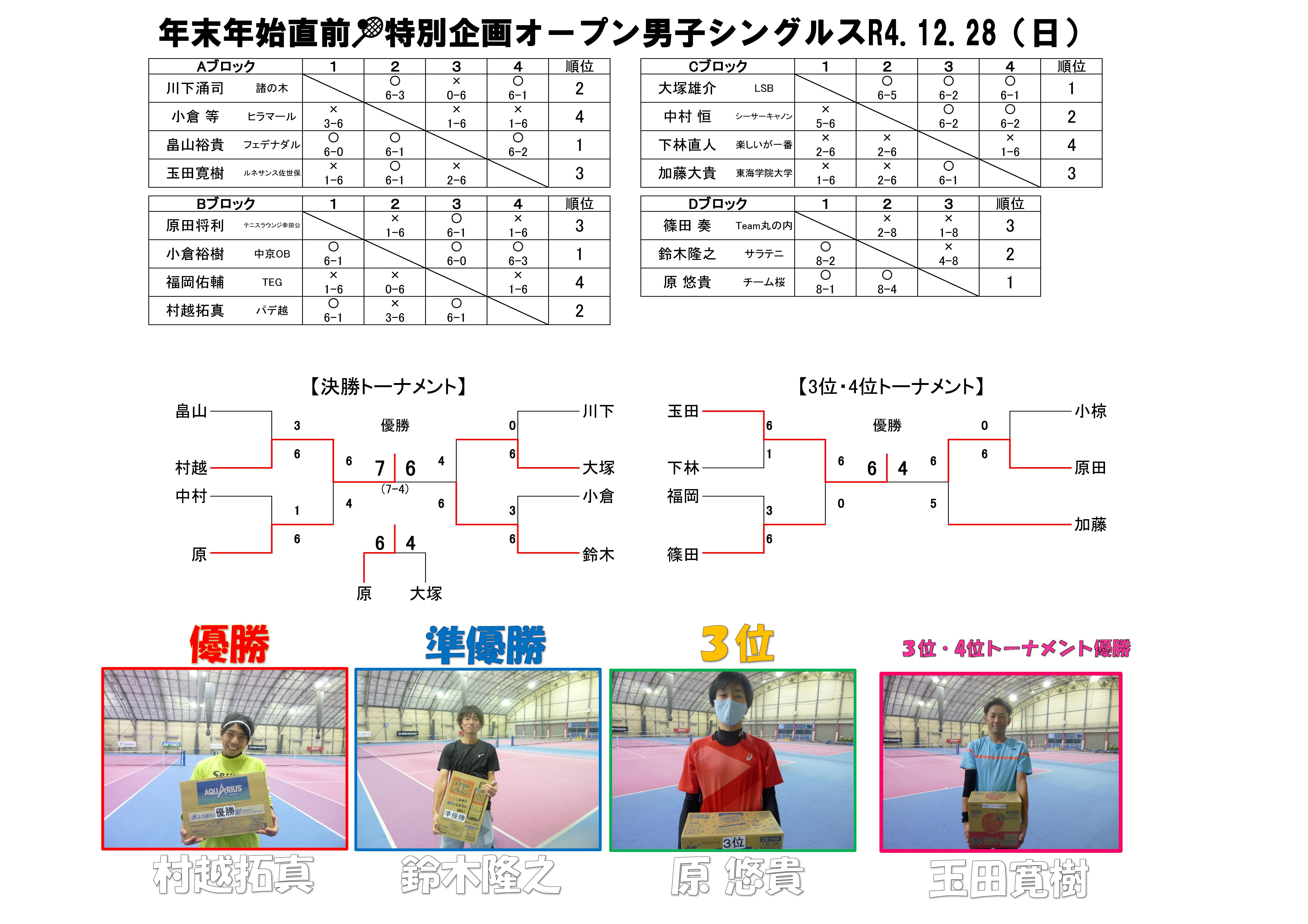オープン男子シングルス結果(12/28)