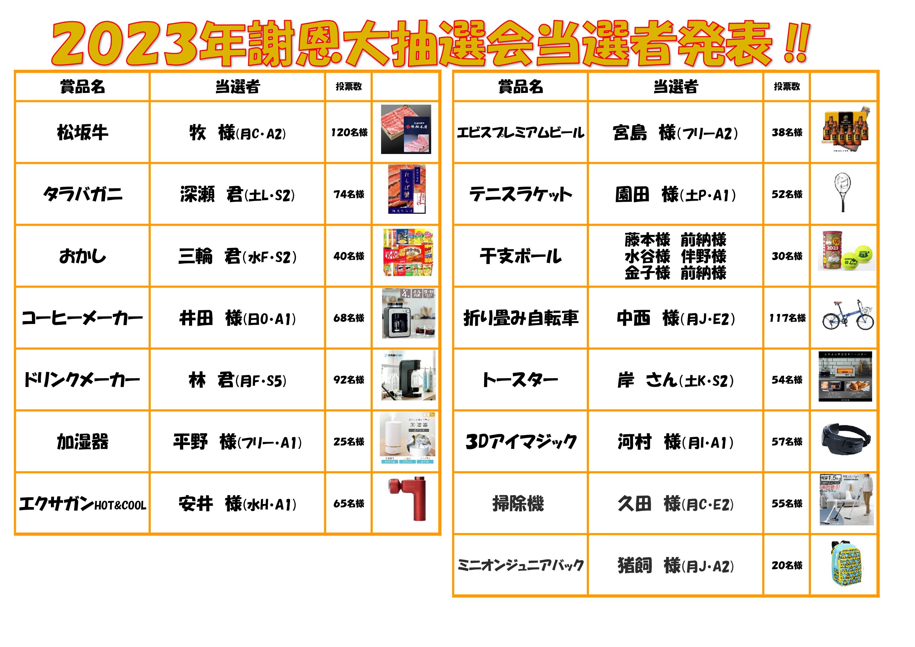 新年謝恩大抽選会当選者発表!!