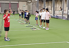 9歳~中学生対象。通常より飛びを50%抑えたボールを使用します。本格的にテニスの試合を覚えていくとともに、集団行動でのルールやマナーを覚えていきます。 |